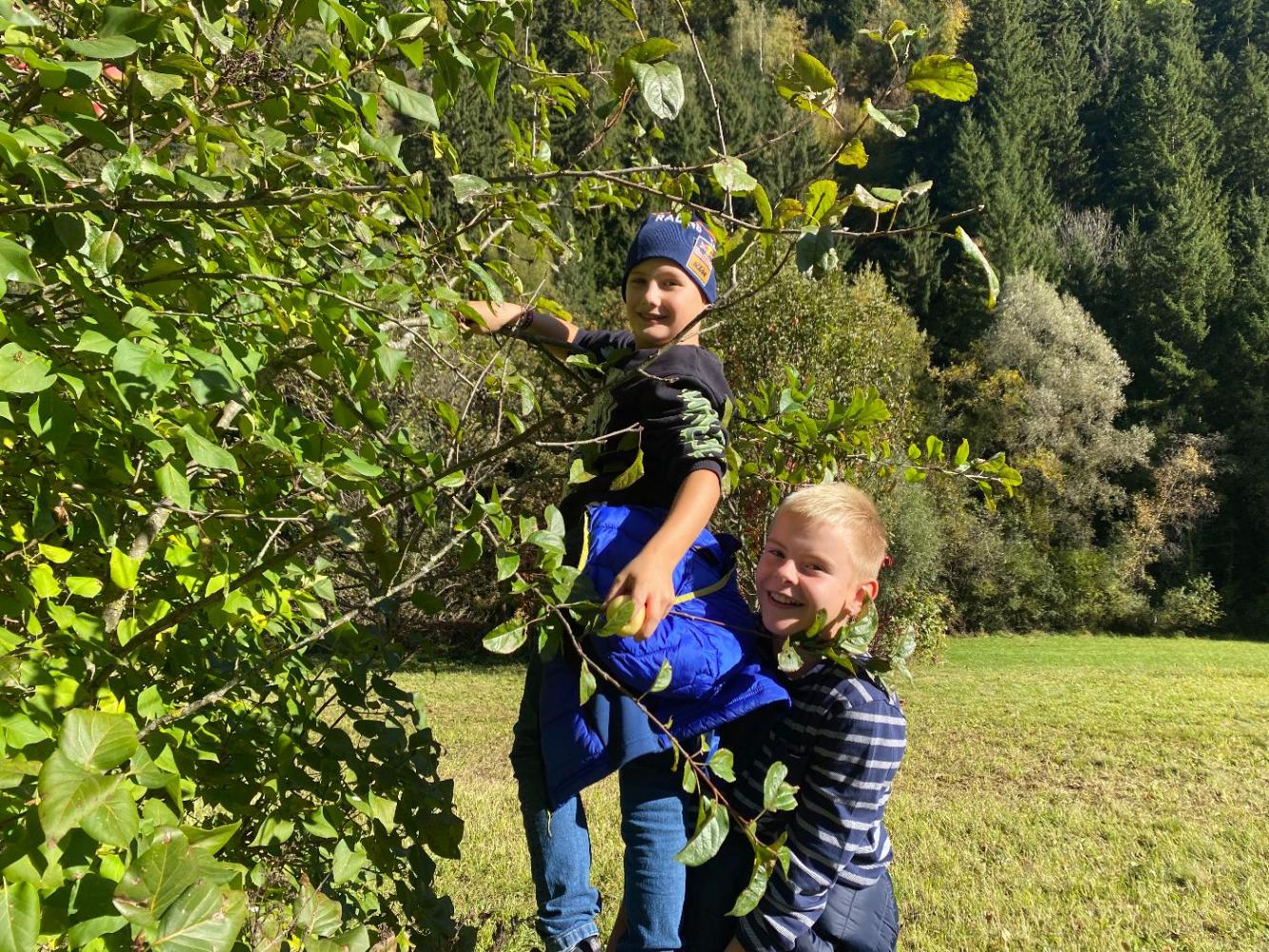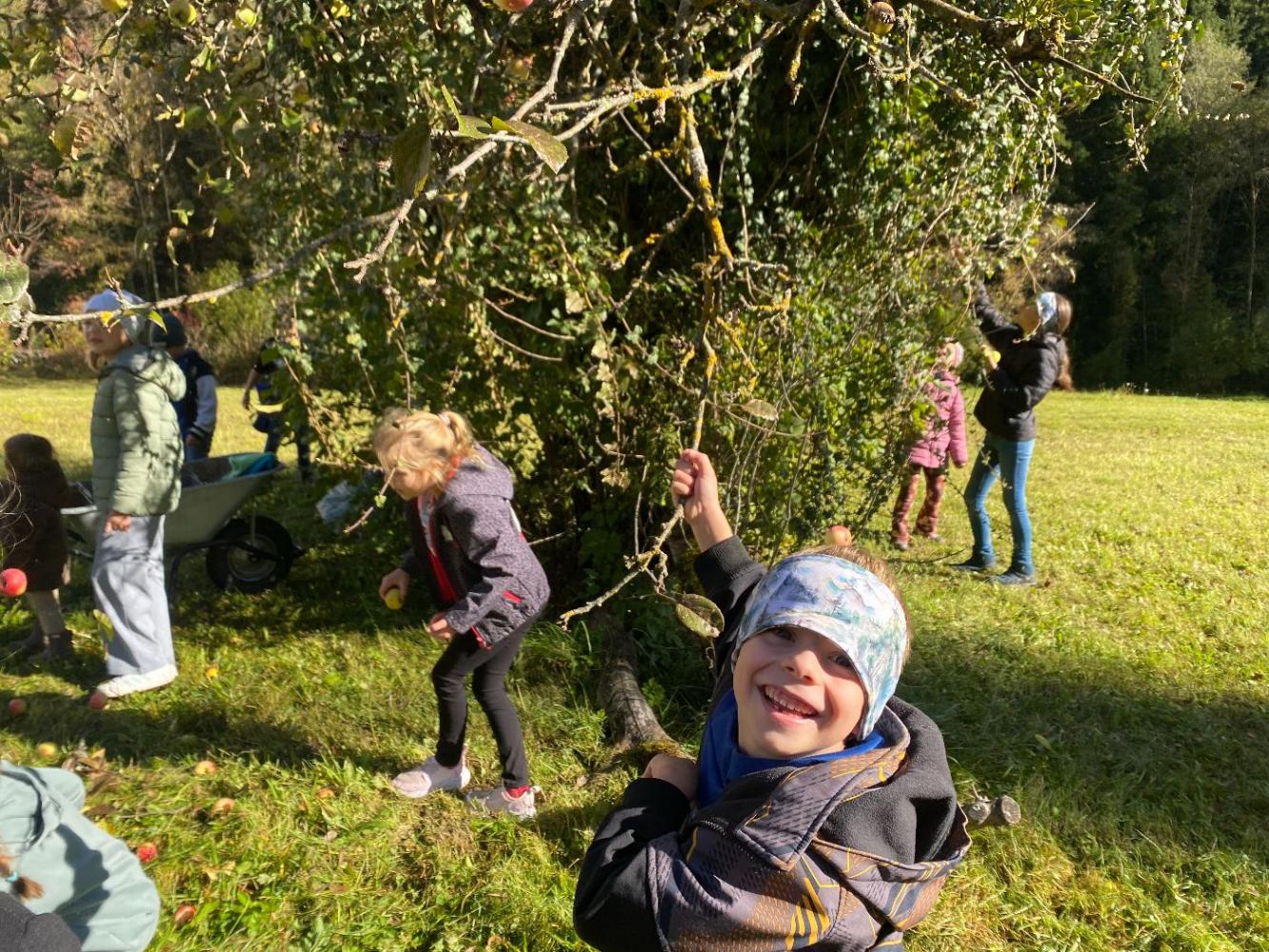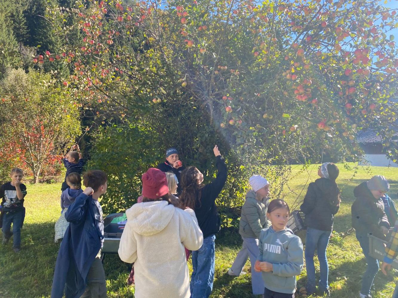 Anschließend durften alle Kinder, auch die der 3. und 4. Schulstufe, tatkräftig mithelfen und Äpfel pflücken. Das machte allen großen Spaß!