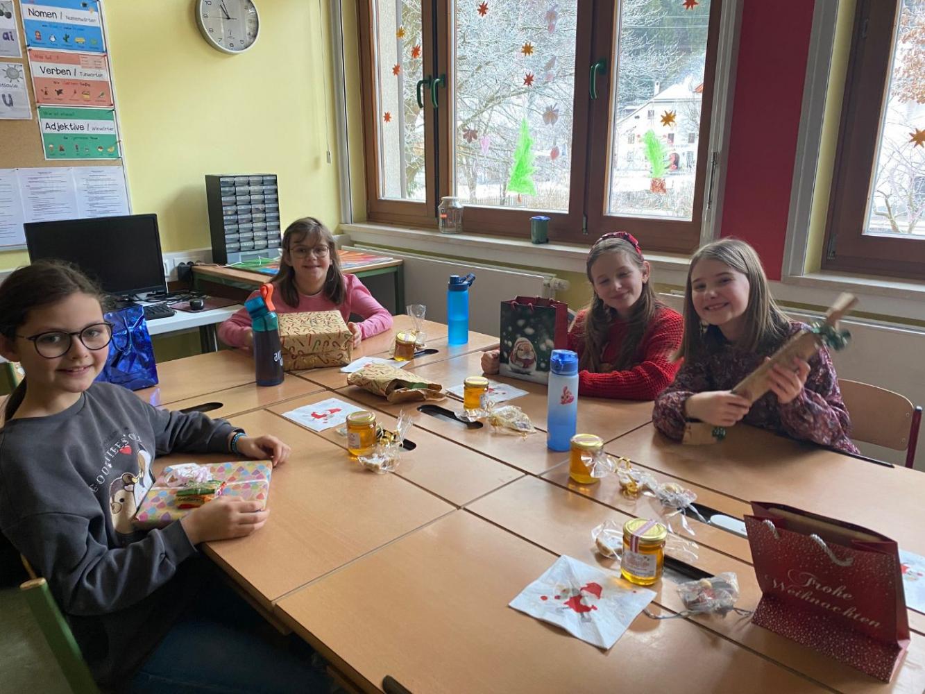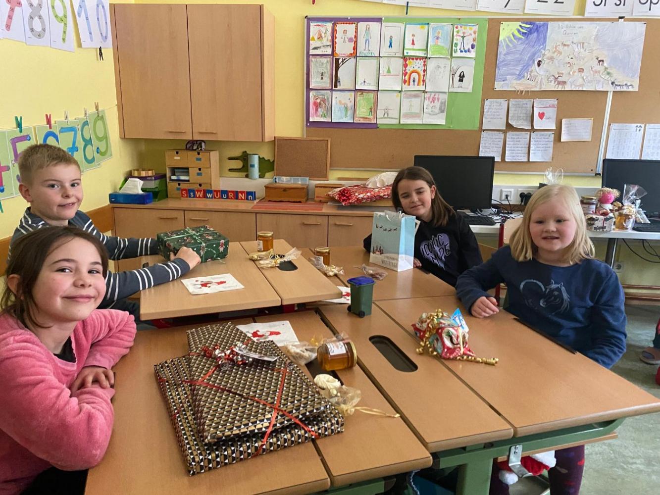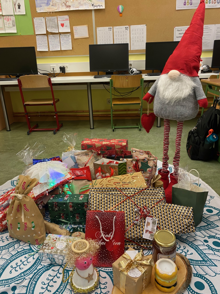 Bei einer gemeinsamen Jause genossen wir das gemütliche Beisammensein. Nach einer kurzen Pause im Freien fand unser Wichteln statt: Jedes Kind überreichte seinem Wichtel das Abschlussgeschenk. Die Freude über die liebevoll ausgewählten Geschenke war bei allen groß.