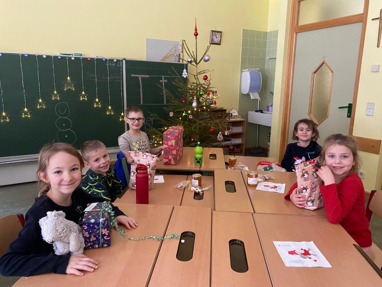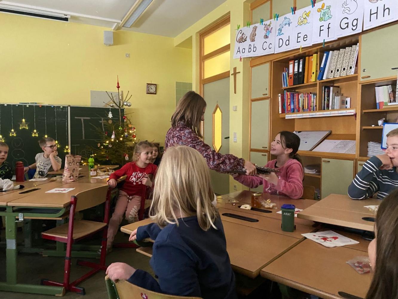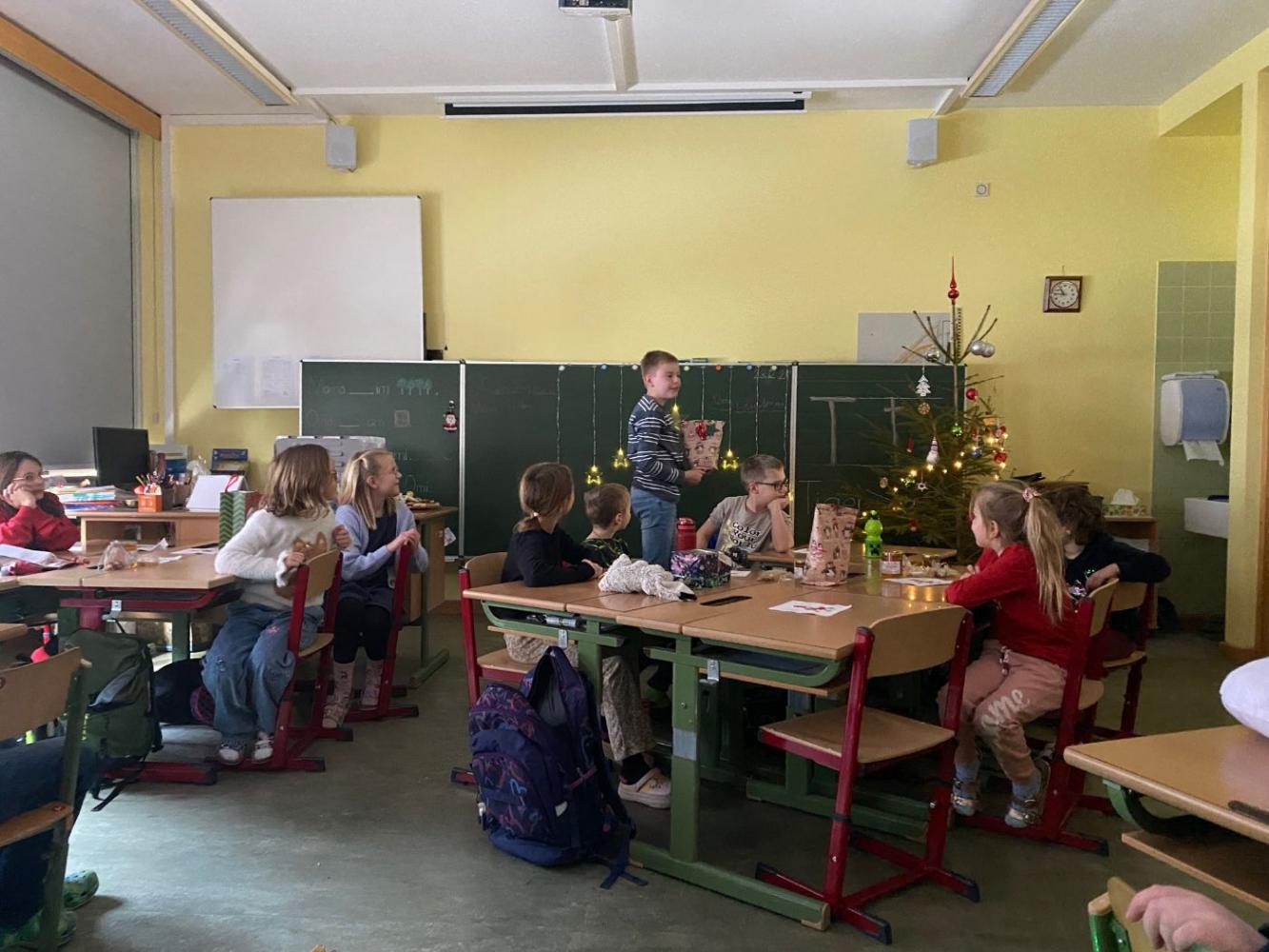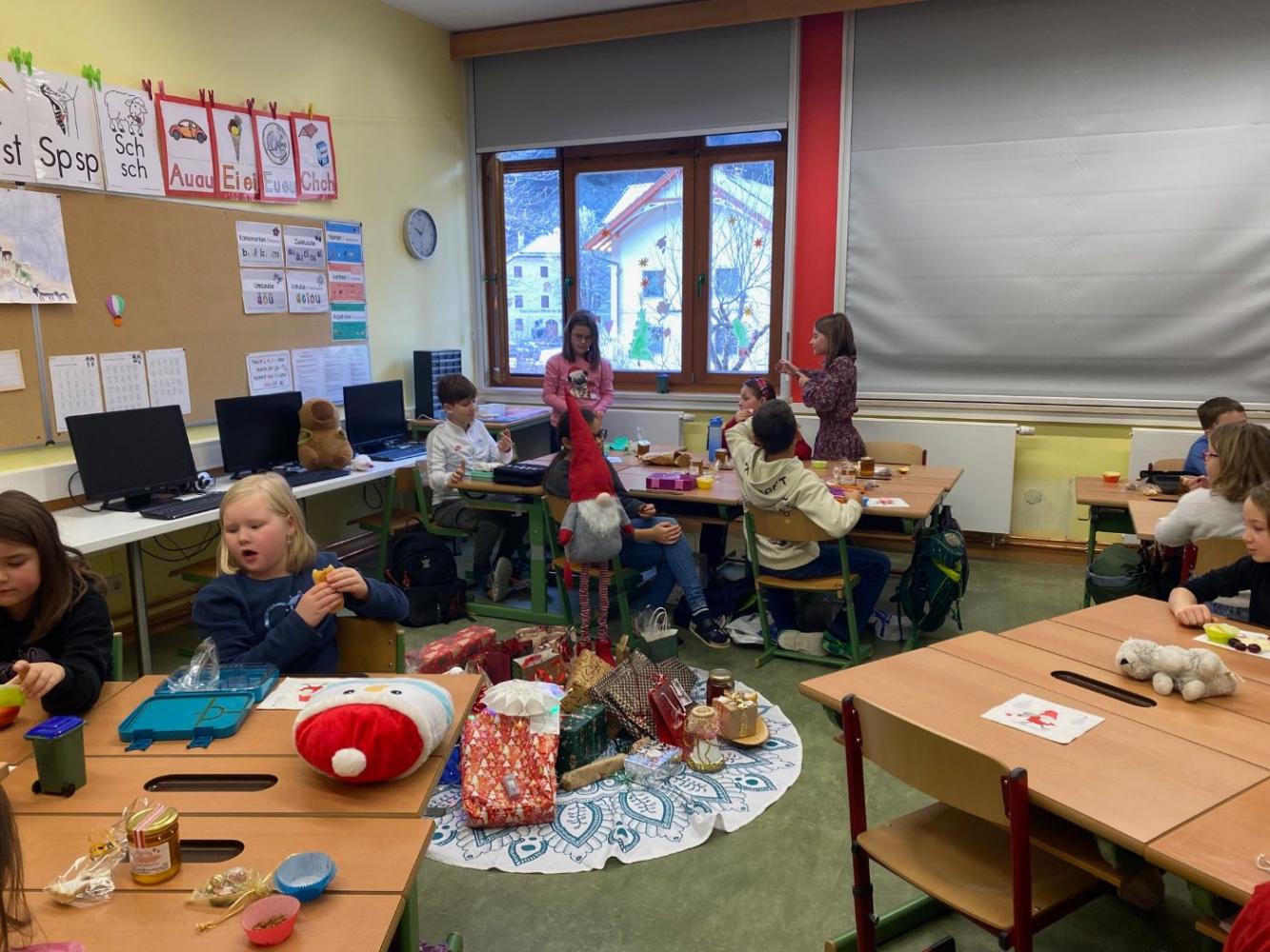 Am letzten Schultag vor den Weihnachtsferien starteten wir den Vormittag gemeinsam im Morgenkreis. Es wurden weihnachtliche Geschichten gelesen und Lieder gesungen.