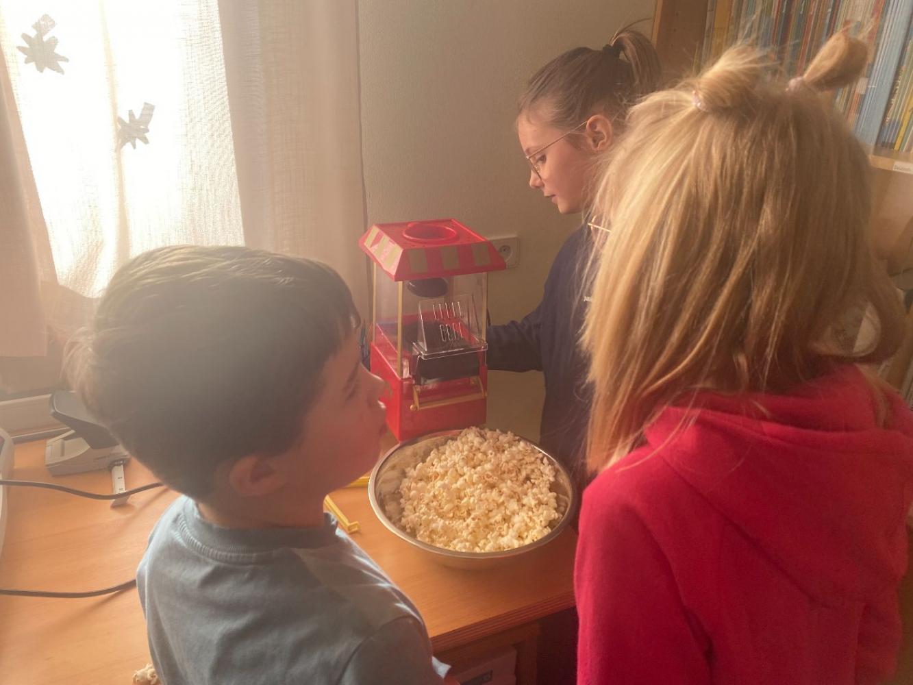 Für echtes Kinofeeling sorgten selbst gemachtes Popcorn und kleine Süßigkeiten, die die Kinder sichtlich genossen. Schon vor Filmbeginn lag viel Aufregung in der Luft – und die Erwartungen wurden nicht enttäuscht: Der Film war ein voller Erfolg und bereitete allen große Freude.