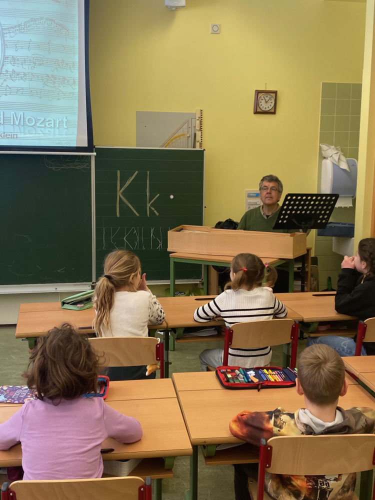 Auf kindgerechte und spannende Weise erfuhren unsere Schülerinnen und Schüler viel über Mozarts Leben, seine Reisen durch Europa und seine außergewöhnliche Begabung schon im jungen Alter. Natürlich durfte auch seine Musik nicht fehlen: Mit bekannten Melodien und interaktiven Elementen wurden die Kinder aktiv in das Programm eingebunden.