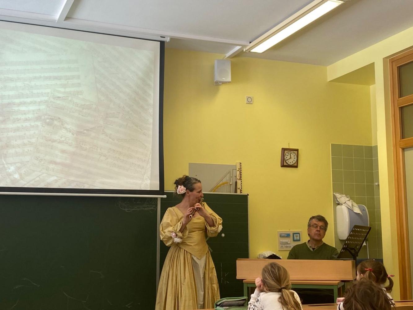 Kürzlich durften wir an unserer Volksschule eine ganz besondere Vorstellung des Tiroler Kulturservice begrüßen. Im Mittelpunkt standen das Leben und Wirken des berühmten Komponisten Wolfgang Amadeus Mozart.